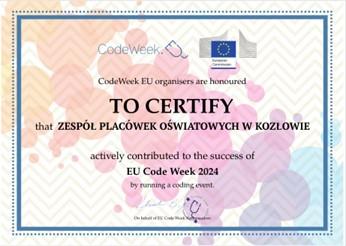 Nasze przedszkole po raz kolejny otrzymało certyfikat za udział w Europejskim Tygodniu Kodowania #CodeWeek.