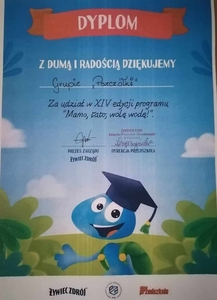 Grupa Pszczółki otrzymała dyplom za udział w XIV edycji programu ,,Mamo, tato, wolę wodę!”. Gratulujemy!!!!!