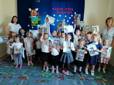 Już nadeszły upragnione wakacje. Dzieci ze śpiewem pożegnały się z przedszkolem. Niektórzy tylko do września, a inni na zawsze. Każdy otrzymał dyplom, nagrodę – książkę i słodycze od pani dyrektor. Absolwentom życzymy wielu sukcesów i spełnienia marzeń. Wszystkim przedszkolakom...