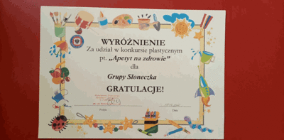 Przedszkolaki brały udział w konkursie plastycznym pt. „Apetyt na zdrowie” ogłoszonym przez Państwowego Powiatowego Inspektora Sanitarnego w Jędrzejowie. Celem konkursu było propagowanie nawyków związanych z prawidłowym odżywianiem poprzez informacje nt. wartości odżywczych...