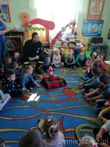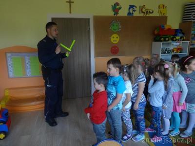We wtorek 18.09.2018r. odwiedził nas w przedszkolu st. sierż. Paweł Blicharski z Komisariatu Policji w Małogoszczu. Pan policjant przypomniał nam zasady ruchu drogowego oraz kwestie dotyczące bezpieczeństwa w przedszkolu i w domu. Wytłumaczył jak należy zachować się w kontaktach z nieznajomymi...