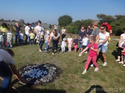 Święto Pieczonego Ziemniaka w naszym przedszkolu to już tradycja. Wzorem ubiegłych lat zaprosiliśmy rodziców do świętowania razem z nami. Rozpoczęliśmy od wrzucenia do ogniska ziemniaków. W oczekiwaniu na smakołyki z ogniska czas umilały nam różne zabawy i rozgrywki sportowe...