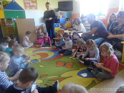 Dnia 12.04.2018 r. do przedszkola przybyli nasi rodzice, dziadkowie, którzy mieli okazję zobaczyć jak wiele już umiemy i jak grzecznie się zachowujemy. Tematem naszych zajęć były zwierzęta z wiejskiego podwórka. Naśladowaliśmy odgłosy zwierząt podczas słuchania bajeczki ortofonicznej...