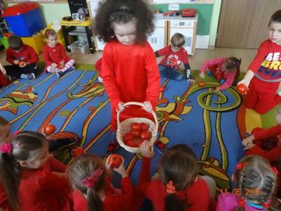 Dnia 05.11.2015 r. w grupie ,,Biedronki” obchodzony był ,,Dzień pomidora”, aby było wyjątkowo wszyscy włożyli ubrania w tym kolorze. Bohaterem dnia był oczywiście śliczny, smaczny czerwony POMIDOREK . Zaraz po śniadaniu, na którym królował oczywiście pomidor odbyła...