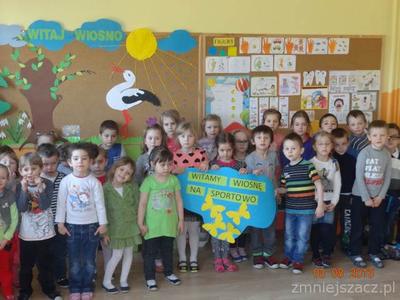 W ramach realizacji projektu,,Przedszkolak czysty i zdrowy” realizowanego w grupie "Muchomorki" wszystkie przedszkolaki powitały wiosnę na sportowo. Konkurencje sportowe z różnymi przyborami przeprowadzone zostały 20 marca.Przedszkolaki zamieniły się w prawdziwych sportowców....