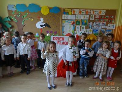 W czwartek 30 kwietnia świętowaliśmy dzień Flagi. Grupa młodsza przedstawiła program artystyczny o tematyce patriotycznej. W programie znalazły się: wiersze , piosenki oraz taniec ,,Krakowiak”, który jest jednym z tańców narodowych. Później w postawie na baczność...