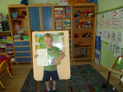 Kacper Winckowicz z grupy drugiej "Muchomorki" wziąŁ udział w konkursie plastycznym"Dinuś w Górach Świetokrzyskich" w ramach realizacji "Przedszkolnego Programu Edukacji Antynikotynowej - Czyste powietrze wokół nas"i zdobył wyróżnienie.