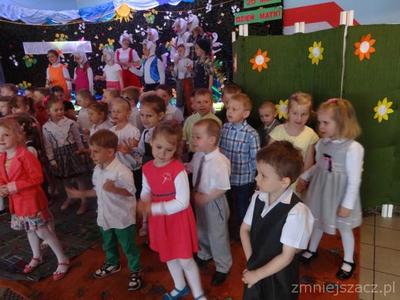 W poniedziałek 26 maja odbyła się uroczystość z okazji Dnia Matki w budynku OSP W Kozłowie Uroczystość rozpoczęła dyrektor przedszkola Pani Wanda Bodzioch witając zebrane mamy i zaproszonych gości :ks .proboszcza Jerzego Korona,  Małgorzatę Adamek kierownika MGZEASZ, Jagodę Wiater podinspektora do spraw oświaty kultury i sportu, Andrzeja Staniek dyrektora MGOK, Annę Skrobot redaktora Echa Dnia, Annę Błachucką, Piotra Malinowskiego radnego .W tym dniu odbyła się premiera bajki autorstwa Anny Błachuckiej ,,Wizyta Koziołka Matołka w Kozłowie z okazji Dnia Matki” .W postacie koziołków wcieliły się dzieci i mamy Oprawę plastyczną do bajki przygotowała  dyrektor przedszkola Pani Wanda Bodzioch. Dzieci przedstawiły montaż słowno-muzyczny( były wiersze, piosenki, humory) Grupa starsza przedstawiła taniec  ,,Swing w uliczce” Spotkanie to było również okazją do podziękowań. Dyplom „ Super Mamy”za okazane naszej placówce serce i wsparcie w naszych działaniach w ciągu roku szkolnego wręczyła Pani Dyrektor-J.Jamróz,B Zielińskiej, M. Ślizowskiej, K. Kowalczyk, A. Kowalskiej, I. Woźnica, M. Janikowskiej, E. Nowakowskiej, R. Jurczak, A. Chachurskiej, M. Włodarczyk, E. Włosińskiej, A. Włodarczyk, J. Suliga, B. Machnik, A. Jamrożek, A. Albin, M. Siewielec, M. Włodarczyk. Dzieci obdarowały wszystkie obecne na uroczystości mamy  girlandami. Po życzeniach i prezentach przyszedł czas na poczęstunek i wspólną zabawę .DJ spełniał propozycję muzyczne dzieci i mam. Był to dzień niezapomnianych chwil i wrażeń oraz doskonała okazja do wspólnych zabaw przy muzyce.