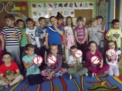 Program przedszkolnej edukacji antytytoniowej ,,Czyste powietrze wokół nas” realizowany był w grupie dzieci 5-6 letnich. Miał on na celu uświadomienia dzieciom szkodliwości dymu papierosowego i umiejętnego radzenia sobie w sytuacjach, w których inne osoby palą przy nich. Realizując program dzieci rozpoznawały różne źródła dymu podczas wycieczki , odbyła się prezentacja multimedialna na temat szkodliwości palenia tytoniu, dzieci wykonały znaczki ,,zakaz palenia”, nauczyły sie piosenki, która patronuje programowi ,,Zielony Dinek". Troje dzieci wzięło udział w konkursie ,,Nowe oblicze Dinusia” organizowanym przez Powiatową Stację Sanitarno-Epidemiologiczną w Jędrzejowie, w którym O. Kowalska zajęła III miejsce, a O. Kowalczyk i J. Janikowski dyplomy za udział.