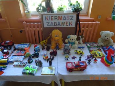 Dzień ten był również okazją do zrealizowania pomysłu Rady Rodzicow - "Kiermaszu używanych zabawek" które podarowały dzieci. Kiermasz cieszył się bardzo dużym zainteresowaniem. Nie zawsze nowa zabawka musi być kupiona w sklepie.Radość dzieci i zadowolenie nauczycieli potwierdza,że warto realizować pomysly rodziców.