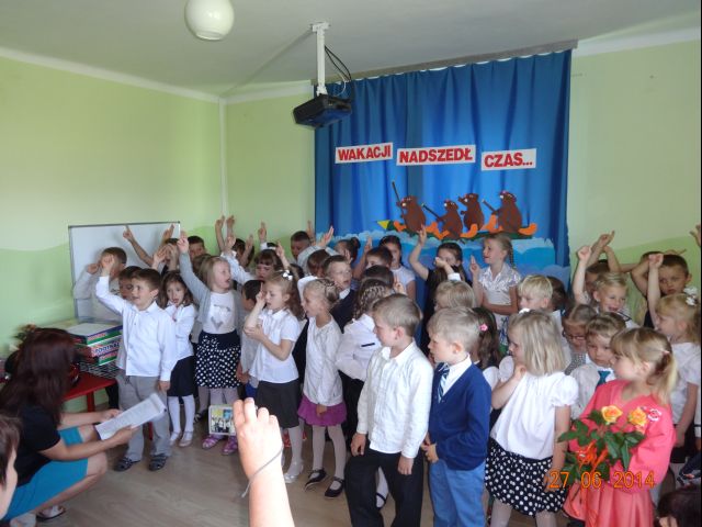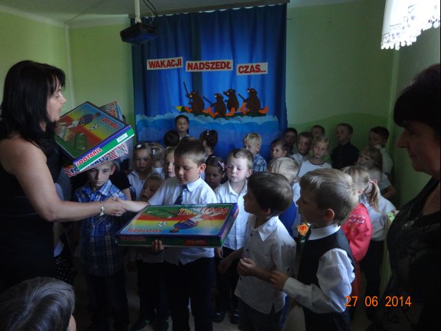 Dnia 27.06.2014r w Przedszkolu Publicznym w Kozłowie odbyło się uroczyste zakończenie roku szkolnego 2013/2014.Pani Dyrektor podziękowała rodzicom, a w szczególności Radzie Rodziców za całoroczną pracę. Dzieci przedstawiły część artystyczną (były wiersze, piosenki,podziękowania.) Rodzice w imieniu swoim jak i swoich dzieci podziękowali Pani Dyrektor, nauczycielom, pracownikom za całoroczny trud i wręczyli wsparcie finansowe dla przedszkola.Wszystkie przedszkolaki na pamiątkę ukończenia przedszkola otrzymały dyplomy i książki. Ponadto: Maja Szproch, Maja Ślizowska, Nikola Jamrożek, Kasia Jurczak, Oliwia Kowalczyk, Natalia Chachurska otrzymały dyplomy za udział w konkursie plastycznym ,,Eko-ludek”. Olga Kowalska za zajęcie III miejsca, Oliwia Kowalczyk i Jakub Janikowski wyróżnienie za udział w konkursie ,,Nowe oblicze Dinusia” Dzieci wyróżnione w konkursie ,,Segreguj pl.”otrzymały od przedszkola gry ,,Futbol”, pozostałe 17 dzieci biorących udział w konkursie otrzymało kredki.