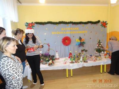 W tym dniu odbył się też ,,Kiermasz bożonarodzeniowy”. Na specjalnie przygotowanych stoiskach znalazły się własnoręcznie wykonane przez rodziców i dzieci bożonarodzeniowe ozdoby. Rodzice wykazali się dużą pomysłowością   i inwencją twórczą .Dzięki zaangażowaniu i hojności rodziców udało się zebrać określoną kwotę, która zostanie przeznaczona na wspólnie wytyczony z rodzicami cel dla dzieci.