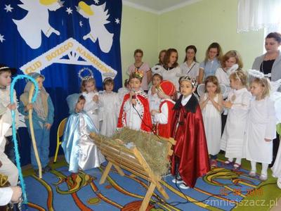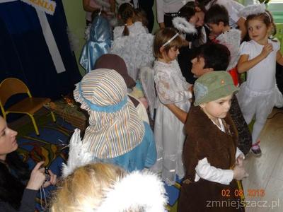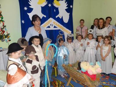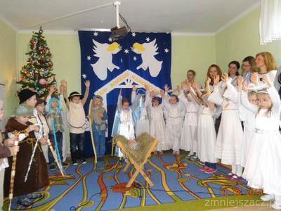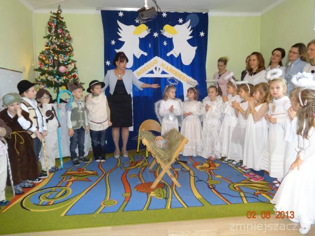 18 grudnia, jak co roku w Naszym przedszkolu dzieci przedstawiły historię narodzin Jezusa . Pani dyrektor Wanda Bodzioch powitała zaproszonych gości m.in. proboszcza Jerzego oraz rodziców. Jasełka uatrakcyjniły kolędy w wykonaniu matek : K Rajek, A Albin, A Grzybowskiej, N Wojda, M Winckowicz, M Włodarczyk, J Suliga, M Michałek. Mali aktorzy z wielkim przejęciem wygłaszali swoje kwestie i z radością śpiewali kolędy. Po przedstawieniu były życzenia i słodycze od ks. Jerzego,  wspólne łamanie się opłatkiem i dziecięca wieczerza wigilijna.
