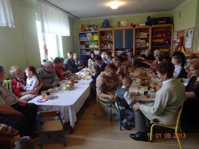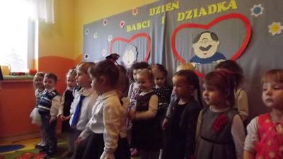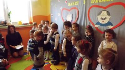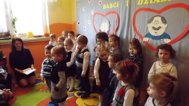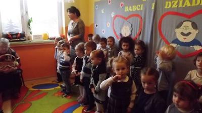 W środę 21 stycznia w Naszym przedszkolu odbyło się uroczyste spotkanie na które przyszli zaproszeni goście? Babcie i Dziadkowie. Przybyłych gości gorąco powitała pani dyrektor Wanda Bodzioch. Przedszkolaki przygotowały pod kierunkiem pań wiersze ,inscenizacje, piosenki i taniec w grupie młodszej ,,Poleczka”. Kończąc przedstawienie składały życzenia licznie zgromadzonej widowni oraz wręczały prezenty .Dziadkowie ze wzruszeniem nagradzali występy swoich wnucząt gromkimi brawami. Po części oficjalnej niecodzienni goście zostali zaproszeni na słodki poczęstunek przygotowany przez rodziców. Święto tak bliskich nam osób było okazją ku temu, by okazać im wdzięczność i szacunek. Na zakończenie tak wspaniałej uroczystości dziadkowie śpiewali znane im piosenki z ich lat młodzieńczych.