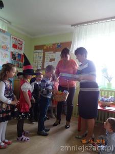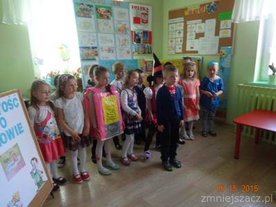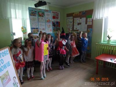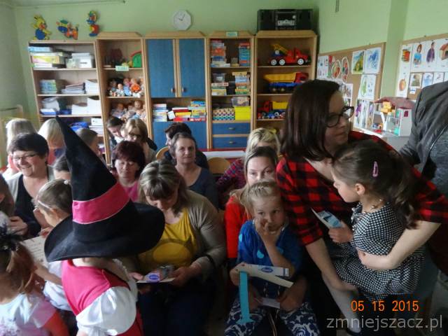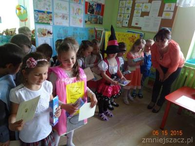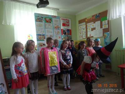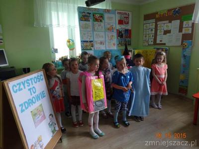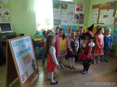 W ramach realizacji programu ,,Przedszkolak czysty i zdrowy” został przygotowany program artystyczny o czystości i zdrowiu na który dzieci zaprosiły swoich bliskich i młodszych kolegów.Były wiersze, piosenki, inscenizacja o czarownicy która nie dbała o czystość i swoje zdrowie.W role czarownicy wcielila się Eliza K.W tym dniu został  również rozstrzygnięty konkurs ,,Zdrowo jemy’’.I miejsce zdobył K Marcinkowski Wszyscy uczestnicy konkursu otrzymali dyplomy i drobne prezenty: dziewczynki lalki,a chłopcy samochody.