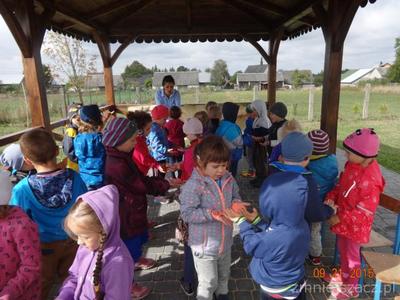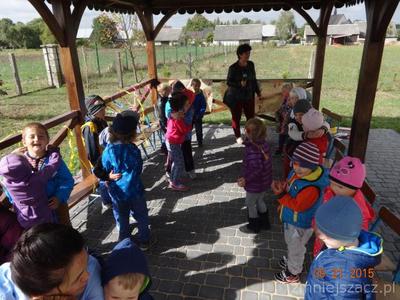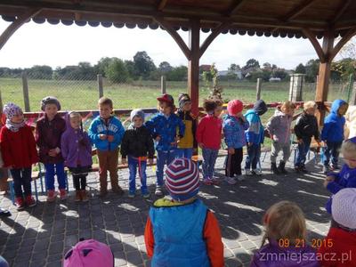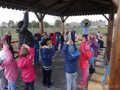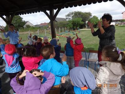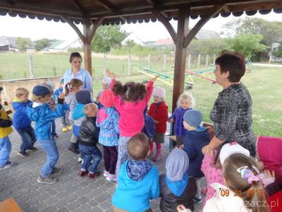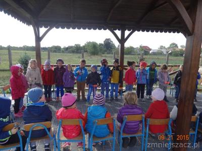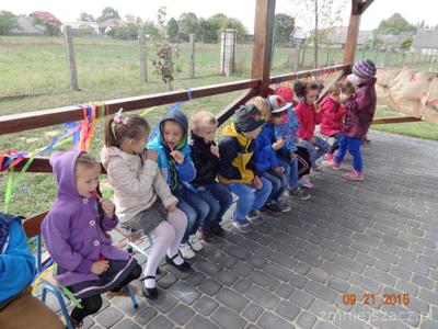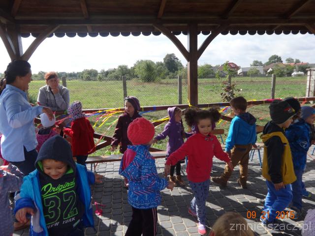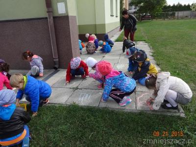 W poniedziałek 21 września w naszym przedszkolu odbył się ,,Dzień przedszkolaka ”Dzieci ten dzień spędziły na świeżym powietrzu. Pod altaną obie grupy zaprezentowały swoje umiejętności wokalne. Tematy występów nawiązywały do nazw grup. Przedszkolaki tańczyły i śpiewały i bardzo chętnie rysowały kredą na płytach chodnikowych.Naszym celem było zintegrowanie całej społeczności przedszkolnej podczas pierwszej wspólnej uroczystości. Obchody tego święta dostarczyły dzieciom wiele radości a nas dorosłych utwierdziły w przekonaniu, że dobro dziecko i jego uśmiech są dla nas najważniejsze. Na pamiątkę tego dnia starszaki wsadziły dęba  na placu przedszkolnym,którego wyhodowali w kąciku przyrodniczym jak uczęszczali do grupy Krasnoludków.
