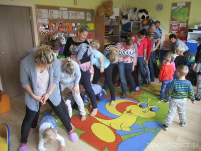 Zajęcia otwarte to jedna z form współpracy przedszkola z rodzicami, podczas których rodzice mają możliwość zapoznania się ze sposobami pracy nauczyciela z ich dziećmi,  obserwowania sposobu zachowania się dziecka na tle grupy oraz zapoznania się z osiągnięciami swojej pociechy. Takie zajęcie zorganizowano w grupie młodszej 25 września ,,Bawimy się wesoło” -zabawy prowadzone metodą ruchu rozwijającego Weroniki Sherbone.
