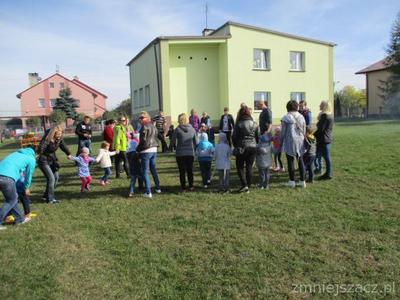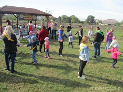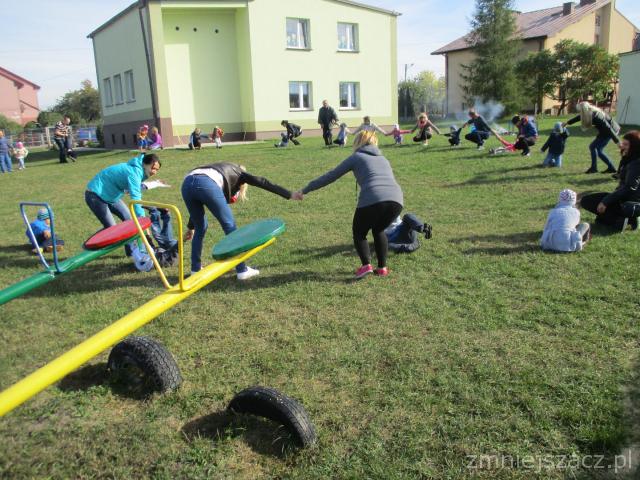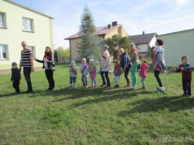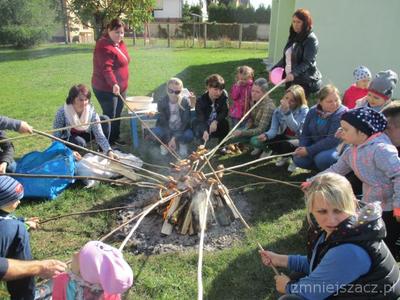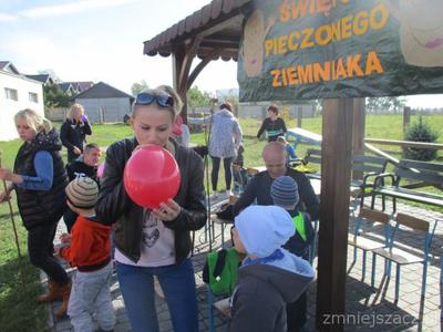 Dnia 2.10.2015r. w naszym przedszkolu już po raz piętnasty odbyło się tradycyjnie ,,Święto Pieczonego Ziemniaka” . Pani dyrektor powitała gorąco rodziców, dziadków, dzieci i zachęciła do wspólnej zabawy. Głównym bohaterem zabaw był ziemniak. Odbyły się zawody: sadzenie ziemniaków, slalom z ziemniakiem, wyścig drużyn kto więcej zbierze ziemniaków itp. Odbyły się również zabawy przy muzyce: ,, Pingwin”, ,,Nie chcę cię znać”, ,,Kaczuszki”. Wspólne zabawy były doskonałą okazją do integracji społeczności przedszkolnej. Po konkurencjach przyszedł czas na skosztowanie pieczonych na ognisku ziemniaków i kiełbasek. Apetyt dopisywał zarówno dzieciom jak i dorosłym. Pani dyrektor zachęciła rodziców do włączenia się w zbiórkę zużytych telefonów komórkowych, z której środki zostaną przeznaczone na zakup karetki dla Hospicjum w Kielcach.