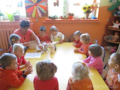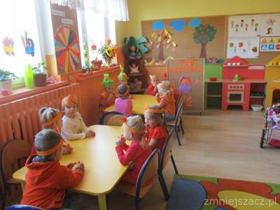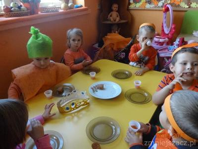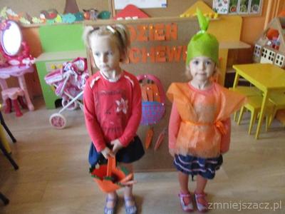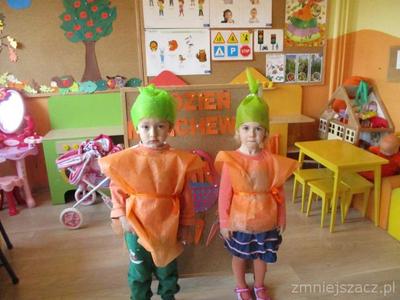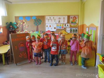 W piątek 9 października w grupie ,, Krasnoludków”  odbył się ,,Dzień Marchewki”. Tego dnia wszystkie dzieci ubrane były w marchewkowy kolor, a na głowach miały opaski z marchewką oraz przyniosły wspaniałe okazy marchewek . Wszystkie działania były związane tematycznie z marchewką. Dzieci uczestniczyły w zajęciach ruchowych, plastycznych,matematycznych. Przy piosence ,,Urodziny marchewki”  najmłodsi rozwijali swoje talenty muzyczne. Ale to jeszcze nie wszystko: dzieci chrupały marchewkę,jadły surówkę z jabłka i marchwi, piły sok marchwiowy i jadły z wielkim  apetytem marchewkowe ciasto. Po takiej dawce witamin obiecały, że zamiast cukierków będą chrupać marchewki. Głównym celem zajęć był poznanie wartości odżywczych marchewki, kształcenie przekonania o konieczności spożywania warzyw i owoców.