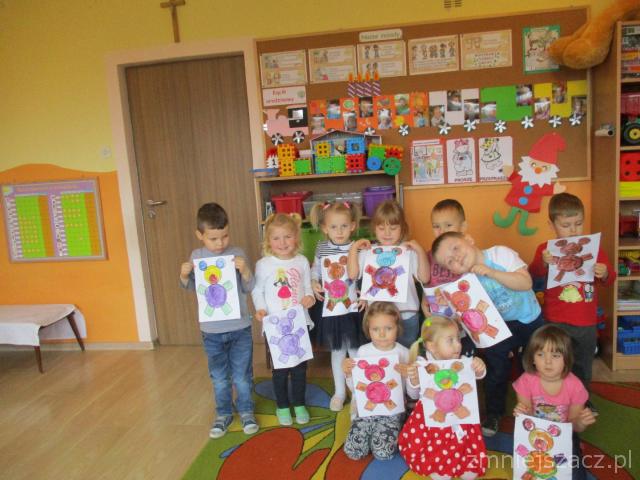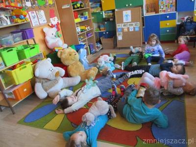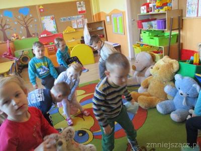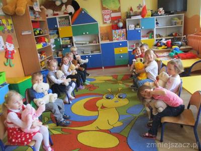 25 listopada grupa młodsza uczestniczyła w obchodach Światowego Dnia Pluszowego Misia. Tego dnia każde dziecko przyszło do przedszkola ze swoim małym lub dużym przyjacielem Misiem. Dzieci zostały zapoznane z historią powstania pluszowego misia. Brały udział w gimnastyce porannej wspólnie ze swoją maskotką, bawiły się przy piosenkach ,,Jadą , jadą misie, ,,Dwa malutkie misie” ,,Niedźwiadek” ,malowały farbami misie. Każdy przedszkolak smakował – małe co nieco” -czyli słodki miodek. Do domu dzieci zabrały odblaski w kształcie misiów. To była super zabawa.
