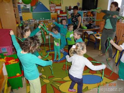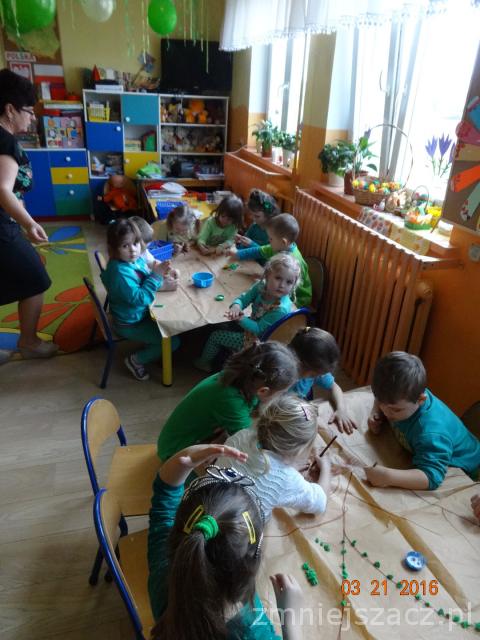 21 marzec- to pierwszy dzień wiosny i tego właśnie dnia w przedszkolu odbył się Wiosenny Bal Zielonych. W tym dniu wszystkie dzieci przyszły ubrane do przedszkola na zielono. Przedszkolaki uczestniczyły w wiosennych konkursach, zabawie przy muzyce, układały puzzle-zwiastuny wiosny, rozwiązywały zagadki, wykonywały pracę plastyczną w grupach. Każda grupa zaprezentowała piosenkę o tematyce wiosennej. Wspólna zabawa była świetną okazją do zintegrowania środowiska przedszkolnego oraz promowania treści ekologicznych.