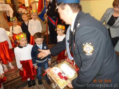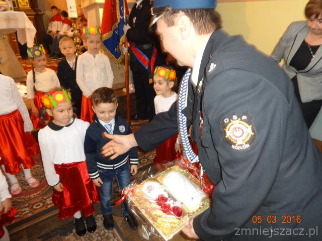 Dnia 3 maja w kościele parafialnym w Kozłowie odbyła się uroczysta Msza św. z udziałem strażaków z Ochotniczych Straży Pożarnych z naszej parafii. Przedszkolaki wierszem, piosenką, humorem, tańcem podziękowały strażakom za trud, odpowiedzialność i bohaterstwo w służbie społeczeństwu. Strażacy też nie zapomnieli o dzieciach częstując ich słodkościami.