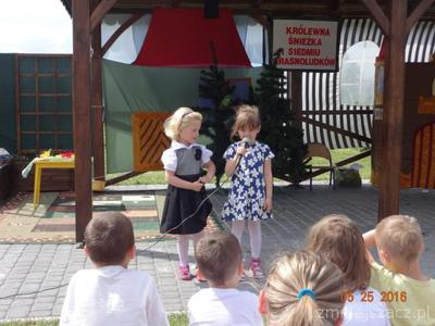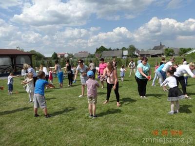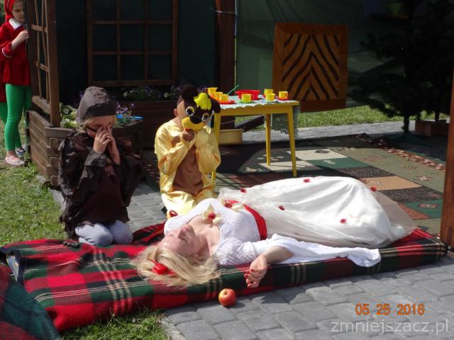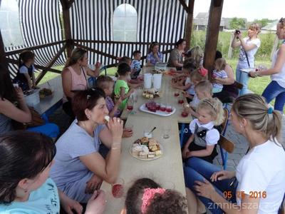 25 maja przedszkolaki zaprosiły swoje mamy do przedszkola, aby złożyć im serdeczne życzenia i zaprezentować przygotowane na tą okazję występy artystyczne. Pani dyrektor W.Bodzioch powitała zaproszonych gości oraz złożyła okolicznościowe życzenia. Grupa starsza wspólnie z rodzicami wystawiła bajkę pt:,, Królewna Śnieżka i siedmiu krasnoludków”. Były wiersze , piosenki, humorki a na zakończenie taniec .Po części artystycznej odbyły się zabawy sportowe,"Koszykówka”, ,,Przeciąganie liny” , ,,Skoki w workach” oraz zabawy z wykorzystaniem chusty animacyjnej .Następnie odbył się poczęstunek kawa, herbata, ciasto oraz wspólny obiad z dziećmi. Wszystkim podczas spotkania towarzyszył dobry humor i uśmiech na twarzy.