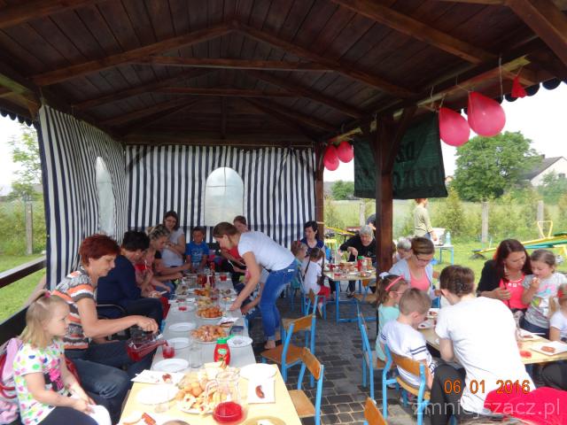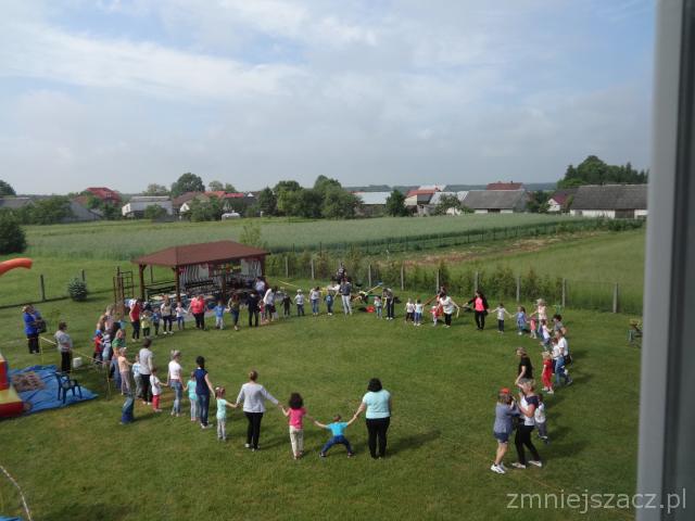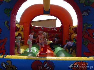 Po śniadaniu dzieci bawiły się w ogrodzie przedszkolnym. Wśród atrakcji, które sprawiły im ogromną radość były ,,dmuchańce”. Na placu stanęła zjeżdżalnia oraz zamek do skakania. Był słodki poczęstunek przygotowany przez rodziców oraz pieczona kiełbasa.Tego dnia do przedszkola zostały zaproszone także przyszłe przedszkolaki wraz z rodzicami. O dzieciach nie zapomniał Burmistrz Miasta i Gminy Małogoszcz J.Głogowski i prezes ZURiP-u A. Adamczyk obdarowując dzieci słodyczami.Wszystkie dzieci w tym dniu były radosne i szczęśliwe.