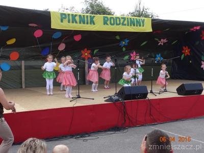 Dnia 4 czerwca przedszkolaki wzięły udział w ,,Pikniku rodzinnym”.Impreza została zorganizowana przez Koło Gospodyń Wiejskich w Kozłowie.Grupa II"Biedronki" wystawiła bajkę wspólnie z rodzicami pt. ,,Królewna Śnieżka i siedmiu krasnoludków”. Były też piosenki, humorki i taniec. Grupa I ,,Krasnoludki" zaprezentowała się piosenką, wierszem i humorkami. Trzy dziewczynki (Julka B., Kinga S. Amelia W. wspólnie z mamami recytowały wiersze Juliana Tuwima. Po części artystycznej odbyły się konkurencje sportowe także z rodzicami (skoki w workach i biegi z dziećmi na rękach)za które uczestnicy otrzymali medale.Była to super zabawa.