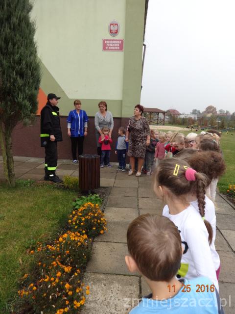 Dnia 25.10.2016r o godzinie 11.00 odbyła się próbna ewakuacja dzieci i pracowników z budynku przedszkola. Cała akcja przebiegała szybko i sprawnie  z zachowaniem wszystkich procedur .Dzieci i pracownicy bez paniki i w sposób bezpieczny opuścili budynek. Nad prawidłowym przebiegiem akcji czuwał Druh Piotr Malinowski Prezes Zarządu Oddziału Miejsko-Gminnego Związku Ochotniczych Straży Pożarnych Rzeczypospolitej Polskiej w Małogoszczu. Próbna ewakuacja ma na celu uczenie dzieci i pracowników właściwego postępowania w razie faktycznego zagrożenia.