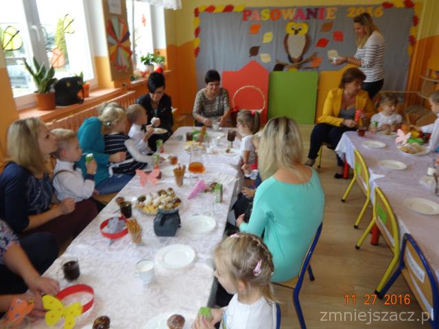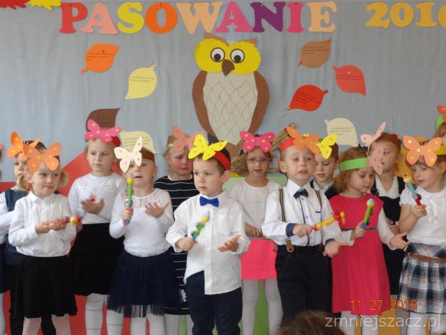 Dnia 27 października 2016r w grupie ,,Motylki” odbyło się ,,Pasowanie na Przedszkolaka ”. Uroczystość odbyła się w obecności pani Dyrektor, rodziców i starszych kolegów wraz z wychowawcą. Był to szczególny dzień dla dzieci, które po raz pierwszy we wrześniu przekroczyły próg przedszkola. Przedszkolaki przedstawiły część artystyczną były: wiersze,piosenki oraz różne zadania do wykonania. Następnie dzieci złożyły uroczysta przysięgę. Pani Dyrektor  przedszkola Wanda Bodzioch za pomocą zaczarowanego lizaka uroczyście pasowała każde dziecko na przedszkolaka.Na pamiątkę tego ważnego wydarzenia dzieci otrzymały odznaki ,,Pasowanie 2016” oraz rożki obfitości. Przysięgę złożyli także rodzice,którzy uroczyście zobowiązali się bezgranicznie kochać i wspierać swoje pociechy na ich przedszkolnej drodze. Po oficjalnej części dzieci i rodzice zasiedli do słodkiego poczęstunku.