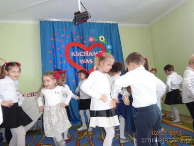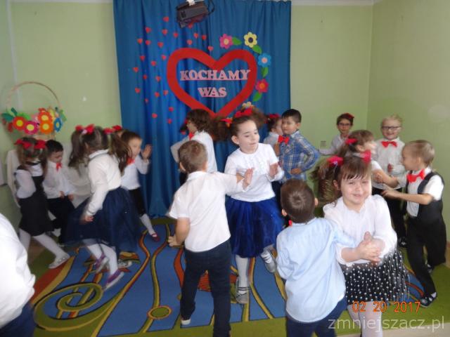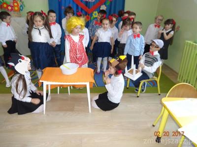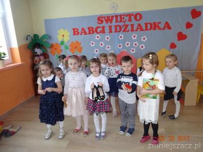 W tym roku w naszym przedszkolu obchodziliśmy Dzień Babci Dziadka 20.01 (piątek).Wszystkich szanownych gości przywitała pani dyrektor Wanda Bodzioch. Zaproszeni goście mieli okazje podziwiać swoje pociechy w specjalnie dla nich przygotowanym programie artystycznym. Dzieci recytowały wiersze, śpiewały piosenki, przedstawiały inscenizacje,tańczyły –grupa II wykonała taniec ,,Szot”, grupa młodsza tańczyła z chusteczkami. Po części artystycznej przedszkolaki wręczyły gościom własnoręcznie wykonane upominki i zaprosiły babcie i dziadków na obiad oraz słodki poczęstunek i pyszne sałatki przygotowane przez mamy naszych przedszkolaków. Mamy nadzieje, że ten dzień na długo pozostanie w pamięci zarówno dzieci jak i dziadków.