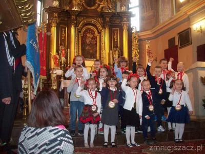 Dnia 03.05.2017 r. w kościele  w Kozłowie dzieci  5-6 letnie przedstawiły montaż słowno- muzyczny poświęcony strażakom z naszej parafii. Dzieci wierszem, piosenką, tańcem podziękowały za ich trud i ogromne poświecenie dla całej społeczności.