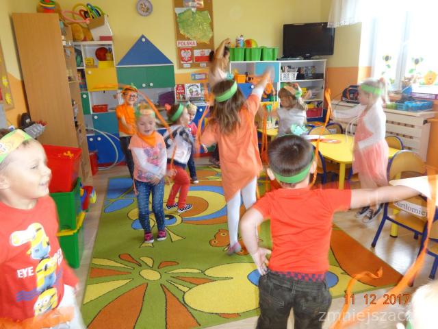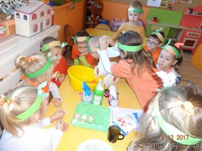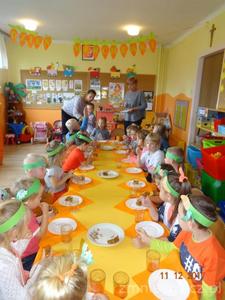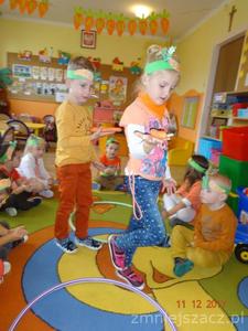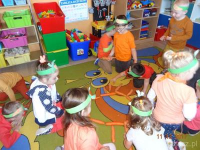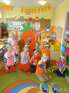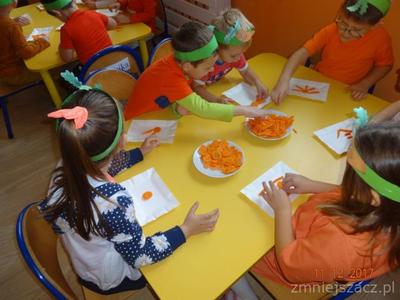 Obchody „Dnia Marchewki” stały się w naszym przedszkolu coroczną tradycją, dlatego też 12 października  wszystkie dzieci z grupy ,,Słoneczka” przyszły do przedszkola ubrane na pomarańczowo. Dzieci brały udział w zabawach tj. ,,Na tropie marchewki”,  ,,Marchewkowe układanki” ,,,Marchewkowe tańce ” przy piosence  ,,Na marchewki urodziny”, wykonały marchewki z kartonu. Przedszkolaki uczestniczyły w przygotowywaniu ciasta marchewkowego i soku z marchewki. Na wspólną degustację marchewkowych pyszności zaprosiły grupę starszaków. Było smacznie i pomarańczowo.