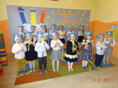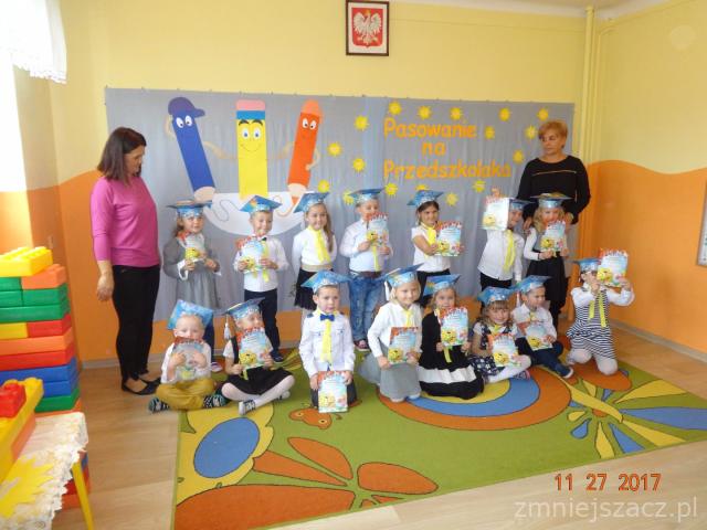 Od 27.10.2017 r. oficjalnie jesteśmy już przedszkolakami. Pani dyrektor ogromnym ołówkiem pasowała nas na przedszkolaków. Na uroczystość zaprosiliśmy rodziców i starszaków. Recytowaliśmy wiersze, śpiewaliśmy piosenki, tańczyliśmy. Mówiliśmy o jesieni, bezpieczeństwie, zasadach zachowania w przedszkolu. Wszystkim bardzo się podobało były gromkie brawa i uśmiechy. Na zakończenie zjedliśmy pizzę i piliśmy colę. Takie pasowanie mogłoby być co tydzień. Teraz Słoneczka zabierają się ostro do pracy.