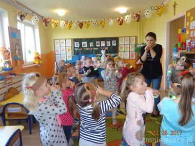 Przedszkolaki zostały zaproszone do wspólnej zabawy. Poznały historię święta, rozpoznawały najpopularniejsze misie na całym świecie tj. Kubuś Puchatek, Miś Uszatek, Koralgol, Yogi, Kung-fu Panda, Patington itp. Recytowały wiersze ,,Niedźwiadek”, bawiły się przy piosenkach: „Gummi Bear”, ‘Pokochaj pluszowego misia”. Dla dzieci w tym dniu przygotowano wiele atrakcji: zabawy ruchowe i plastyczne, zgadywanki, śpiewanie piosenek, misiowe tańce, pieczenie,, misiowych” ciasteczek.