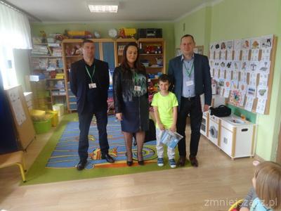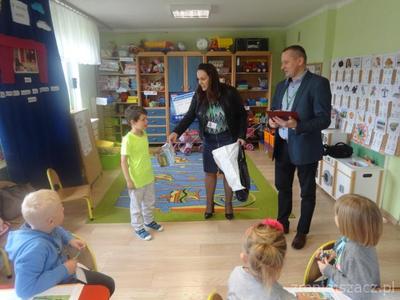 W naszym przedszkolu zapanowała wielka radość. Nasz kolega z grupy II Michał Janikowski, zajął III miejsce na szczeblu powiatowym w VIII Ogólnopolskim Konkursie Plastycznym dla Dzieci pod hasłem ”Bezpiecznie na wsi mamy – upadkom zapobiegamy” zorganizowanym przez Kasę Rolniczego Ubezpieczenia Społecznego. Zakwalifikował się do etapu wojewódzkiego. Michałowi osobiście pogratulował Kierownik Placówki Terenowej KRUS w Jędrzejowie Michał Molenda. Michałku wszyscy Ci gratulujemy.