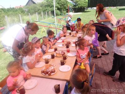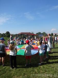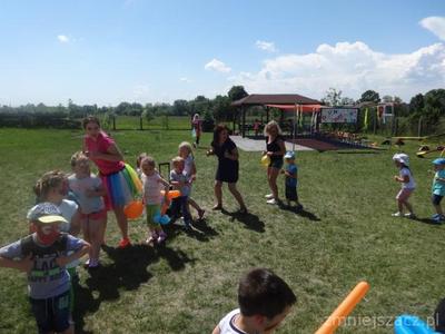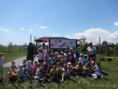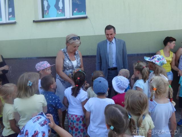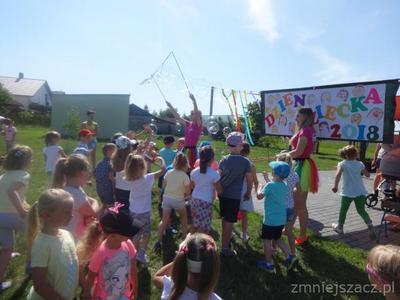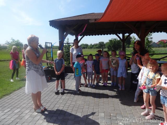 Od rana wszyscy byliśmy radośni i zadowoleni. Nie mogliśmy się doczekać bo, placu przedszkolnym miał odbyć Dzień Dziecka. O godzinie 9.30 pani dyrektor uroczyście ogłosiła rozpoczęcie imprezy. Razem z nami bawiły się też dzieci które od września będą uczęszczać do przedszkola. Rozpoczęła się zabawa. Były zabawy z chustami i tunelami animacyjnymi, wielkie bańki mydlane, zabawy taneczne i malowanie twarzy. Po placu fruwały motyle, zaczęły biegać tygryski, pieski, pandy i jeszcze inne zwierzątka. Dla spragnionych był kompot i słodkie ciasto. Odwiedził nas również Burmistrz Miasta i Gminy Małogoszcz pan Jan Głogowski. Złożył nam wszystkim serdeczne życzenia i przywiózł słodycze. Dziękujemy. Zabawa była wspaniała.