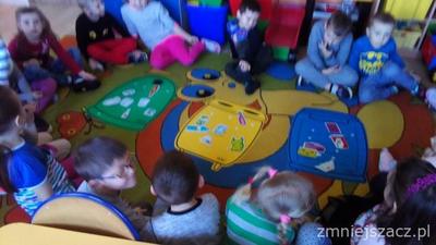 Dzieci poznały przygody Zdrojka, Zosi i Krzysia którzy przekazali cenną wiedzę o wodzie, jej roli w przyrodzie i życiu człowieka. Przedszkolaki chętnie bawiły się przy piosence ,,Mamo, tato wolę wodę” .