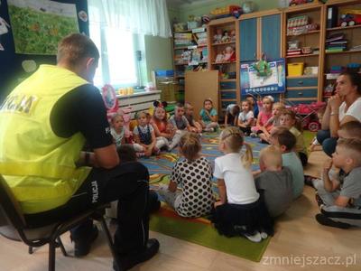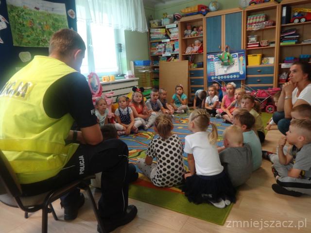 Zbliżają się wakacje, już nie możemy się doczekać ! Dlatego w poniedziałek 18.06.2018 odwiedzili nas panowie policjanci , którzy mówili nam jak bezpiecznie spędzić wakacje. Dowiedzieliśmy się między innymi , że nie wolno otwierać drzwi nieznajomym, nie wsiadać z nieznajomym do samochodu, nie oddalać się od rodziców. Wiemy, że policjant zawsze pomoże nawet w najtrudniejszej sytuacji. Przekazali nam jeszcze wiele innych cennych wskazówek.