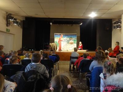 Dnia 3 grudnia pojechaliśmy do Domu Kultury w Małogoszczu na świąteczny spektakl pod tytułem „Niech tegoroczne święta każdy zapamięta” w wykonaniu aktorów z Teatru „MASKA” z Krakowa. Kasia bohaterka przedstawienia miała wątpliwości czy Mikołaj naprawdę istnieje. Goście którzy ją odwiedzili mieli trudne zadanie, aby ją do tego przekonać.