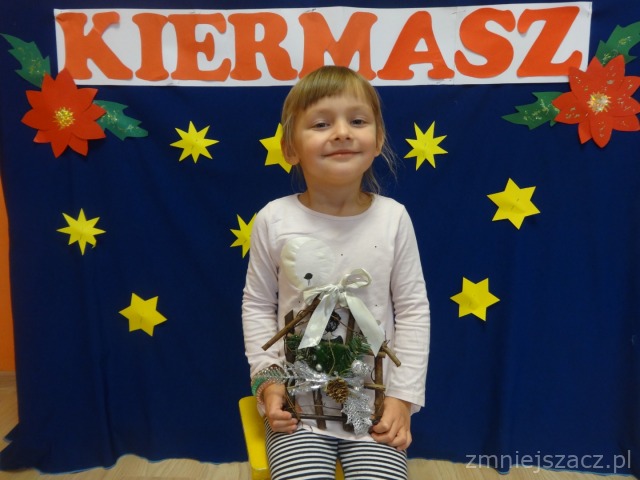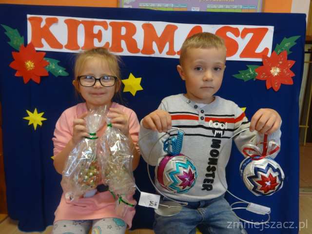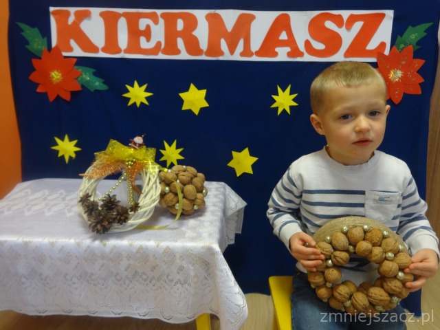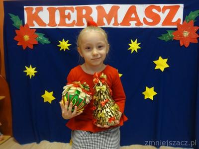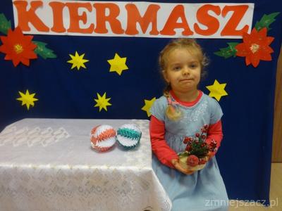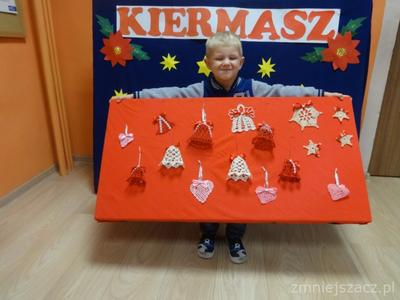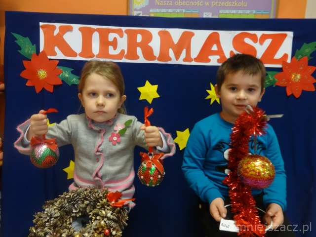 Rada Rodziców zaproponowała, aby w tym roku zorganizować w naszym przedszkolu Kiermasz Bożonarodzeniowy. Rodzice mieli wykonać ozdoby świąteczne dowolną techniką, które będą sprzedane podczas spotkania z Mikołajem. Odzew był ogromny.