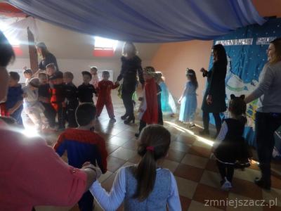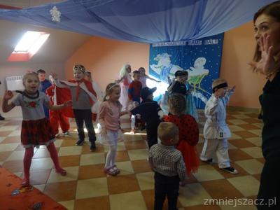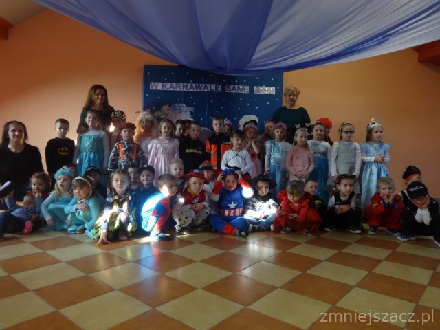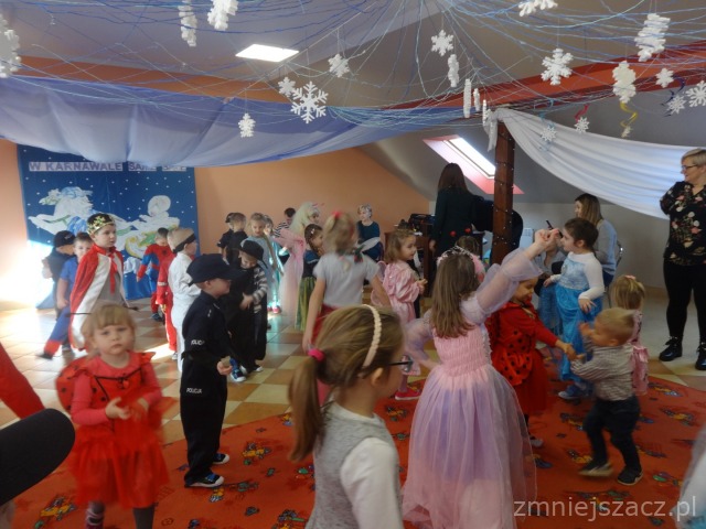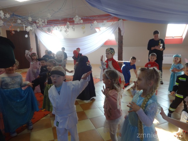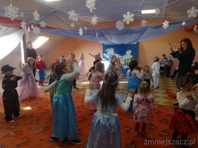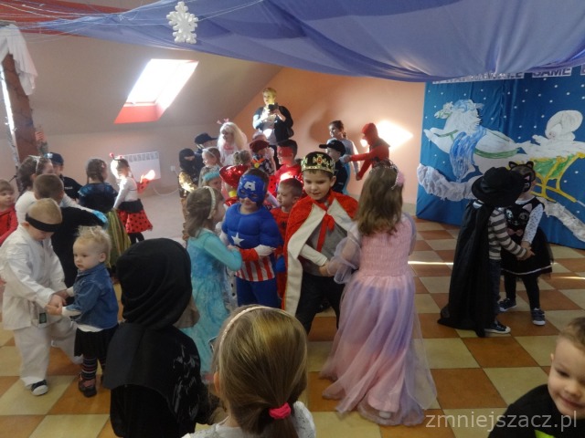 Na ten dzień czekaliśmy bardzo długo. Każdy zastanawiał się za kogo się przebierze, aby strój był niepowtarzalny. W piątek 01.02.2019r. w pięknie przystrojonej sali w remizie OSP w Kozłowie, gdzie był nasz bal pojawiły się królewny, księżniczki, królowie, wróżki, biedronki, piraci, policjanci, żołnierze, strażacy, spider – mani i różne postacie z ulubionych bajek. Pani dyrektor Wanda Bodzioch życzyła nam udanej zabawy i rozpoczęła bal tańcząc z nami walczyka. Wszyscy świetnie bawiliśmy się przy skocznej i rytmicznej muzyce. Razem z naszymi paniami tańczyliśmy w parach,w kołeczkach, robiliśmy pociągi. Uczestniczyliśmy we wspólnych zabawach i konkursach. W czasie przerwy mieliśmy czas na słodki poczęstunek, pizzę i soki. Miłe chwile szybko minęły i wróciliśmy do przedszkola.