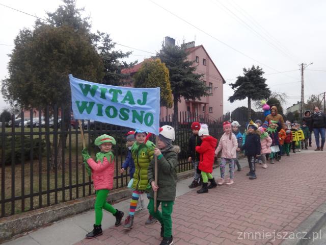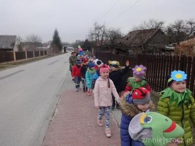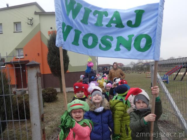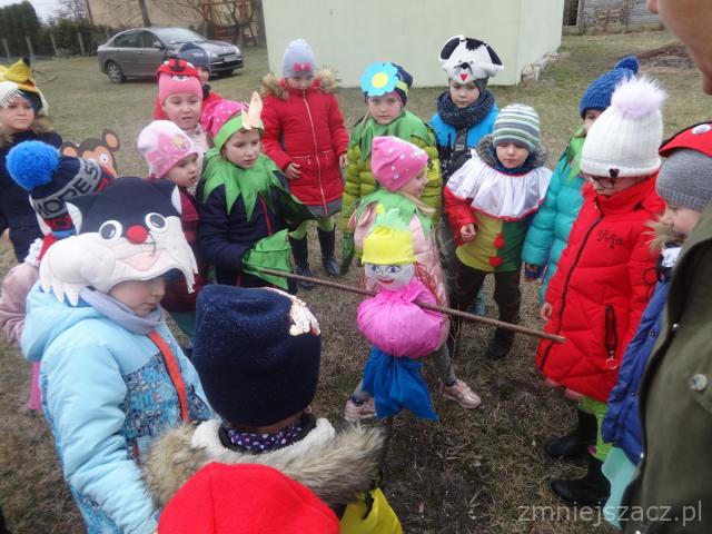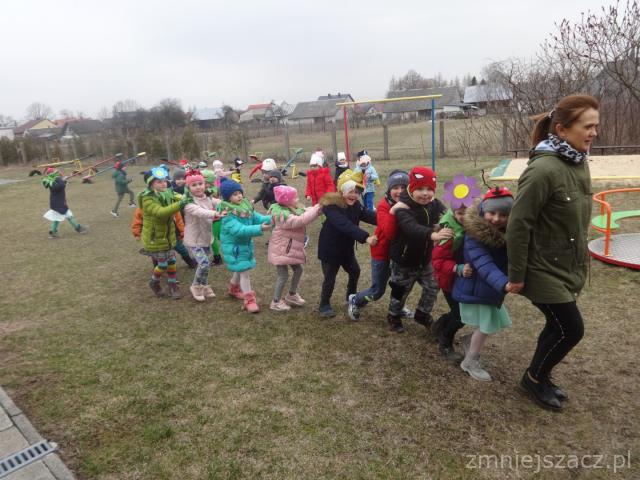 21. 03.2019 żegnaliśmy zimę, a witaliśmy wiosnę. Od samego rana zaczęliśmy się przygotowywać do wiosennego korowodu. Rano wykonaliśmy kolorowe tulipany i tańczyliśmy przy wiosennych piosenkach. Potem w przebraniach zwierząt przemaszerowaliśmy drogami Kozłowa wołając wiosnę. Po powrocie na plac przedszkolny pożegnaliśmy Marzannę i wróciliśmy do sal. Jakie było nasze zaskoczenie kiedy wyglądaliśmy przez okno, a jej już nie było?. Wiosna ją przegoniła.