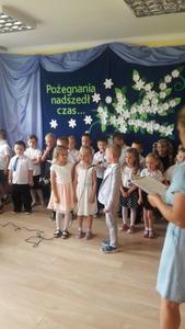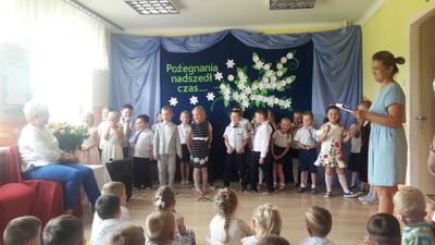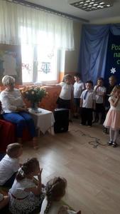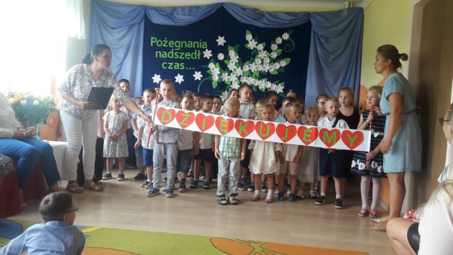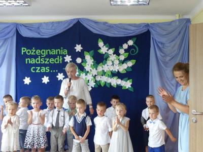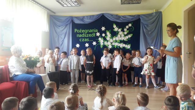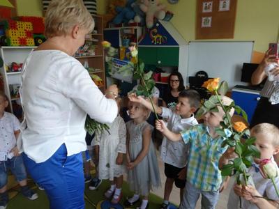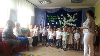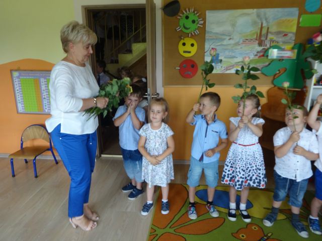Jeśli zapytacie nas - Kto jest szefem w przedszkolu? odpowiemy pani dyrektor Wanda Bodzioch. Jednak po 19 latach wytężonej i pełnej poświęcenia pracy w naszym przedszkolu zabiera ją nam jakaś mroczna instytucja ZUS i jakaś emerytura. Szkoda, bo pod rządami pani dyrektor przedszkole rozkwitło, a my dzieci czułyśmy się bezpieczne i szczęśliwe. Więc w podziękowaniu za wszystko przygotowaliśmy dla naszej pani dyrektor krótką humorystyczną część artystyczną z wierszami i piosenkami.