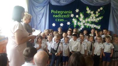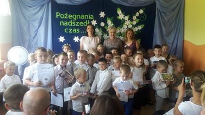 Stało się 19.06.2019r. to ostatni dzień w przedszkolu przed wakacjami i pożegnanie starszaków. Pani dyrektor Wanda Bodzioch powitała nas uroczyście w tym szczególnym dniu. Życzyła wszystkim wspaniałych i bezpiecznych wakacji. Sześciolatki pożegnały przedszkole ponieważ opuszczają nas, by rozpocząć po wakacjach naukę w klasie pierwszej. Pięciolatki pożegnały sześciolatków, a maluchy powitały wakacje. Po części artystycznej przyszedł czas na podziękowania dla rodziców, którzy byli zaangażowani w działania na rzecz przedszkola i udzielali się bezinteresownie. Rodzice w podziękowaniu otrzymali dyplomy. Dzieci otrzymały nagrody za zbieranie makulatury i nakrętek. Pani dyrektor podziękowała za pracę pani Teresie która odchodzi na zasłużoną emeryturę.
