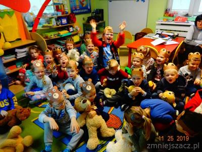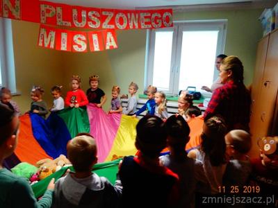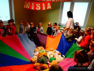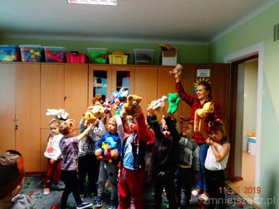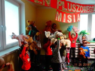 Każdy go ma, przytula i kocha. Pluszowy Miś 25.11.2019 obchodził swoje święto. W tym dniu przynieśliśmy do przedszkola swoje pluszowe misie. Cały dzień opiekowaliśmy się nimi. Były tańce z misiami, zabawy z misiami, gimnastyka z misiami, piosenki o misiach i rysowaliśmy naszych milusińskich. Próbowaliśmy nawet miód. Żeby nam było miło zostały z nami w przedszkolu na cały tydzień.