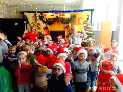 Dnia 06.12.2019 byliśmy na spotkaniu z Mikołajem  w Domu Kultury we Włoszczowie. Zaśpiewaliśmy mu piosenkę i razem zapytaliśmy „Mikołaju święty co w tym worku masz, jakie upominki grzecznym dzieciom dasz?”.I obdarował nas prezentami. Każdy dostał paczkę, a w niej słodycze i kolorowe kredki. Potem oglądaliśmy film „Jak zostać świętym Mikołajem?”.Czas szybko minął i w dobrych humorach wróciliśmy do przedszkola.