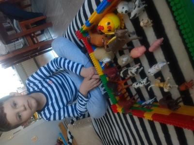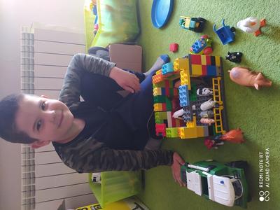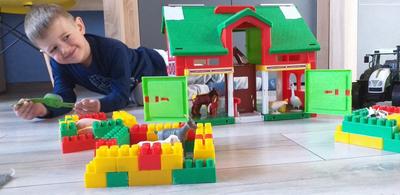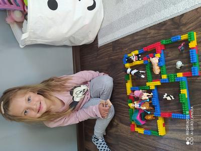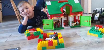 Hania, Kacper i Wktor stwierdzili: skoro na ich podwórkach nie ma zwierząt to zrobią makietę i zagrodę z klocków. Połączyli zabawę z nauką. Kochane dzieciaki jesteśmy z Was dumne