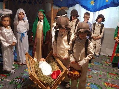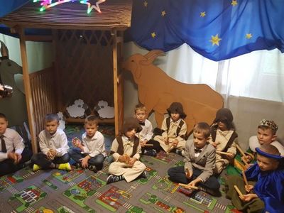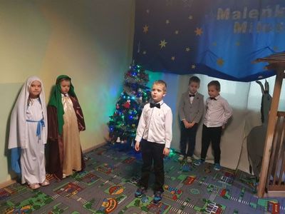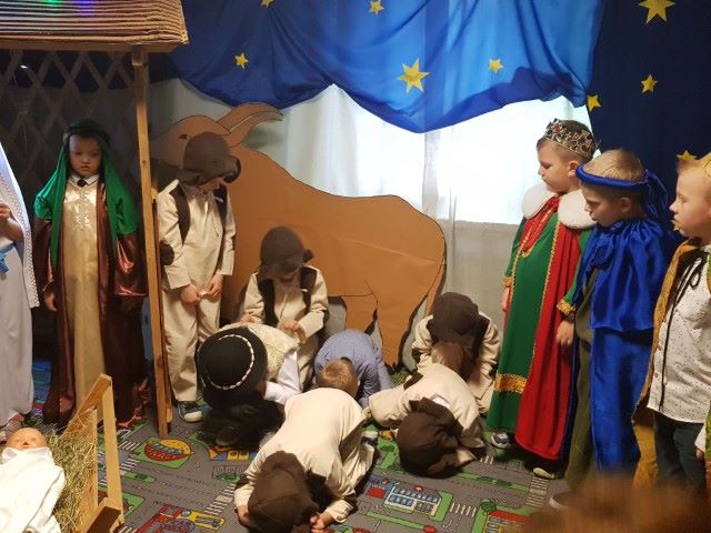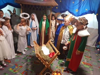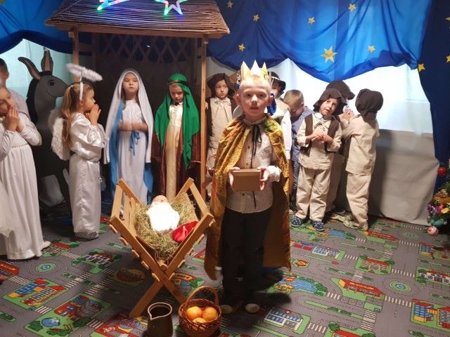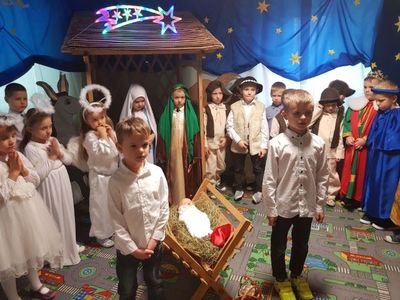 Grupa Misie nie spoczywa na laurach. Mimo pandemii przygotowali jasełka pod kierunkiem p. Marzeny Trybek, p. Agnieszki Orzeł i p. Agnieszki Skrobot. Dzieci wcieliły się w role Maryi, Józefa, Trzech Króli, pastuszków i aniołków. Recytowały swoje kwestie i śpiewały kolędy. Wykonały również akompaniament na instrumentach perkusyjnych do utworu Cambieri „Dzwoneczek”. Pani dyrektor Ilona Słupczyńska podziękowała dzieciom i nauczycielom za piękne jasełka. Złożyła również wszystkim życzenia zdrowych i rodzinnych Świąt Bożego Narodzenia.